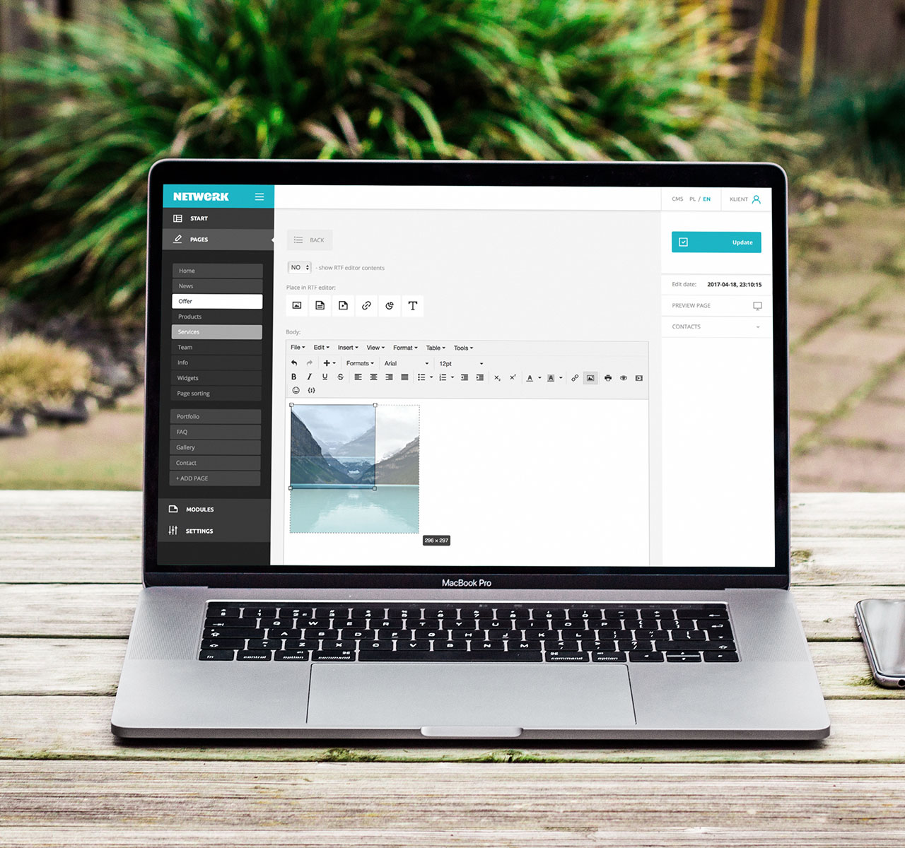 NETWERK is the best way to manage the content on your responsive website. It offers a huge toolset containing variety of modules such as a slider, widgets, newsletter, tables, additional menus and lots of others.